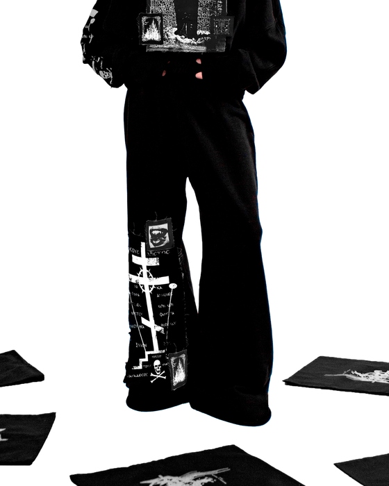 на одной из штанин те же нашивки, что и на худи, чтобы комплект был завершенным и цельным.
